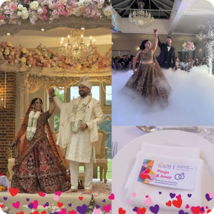 “In lieu of traditional wedding favours, we chose to make a donation to Rainbows Children’s Hospice in loving memory of our nephew, Aarav. Aarav touched our hearts deeply with his bravery as he lived with Spinal Muscular Atrophy (SMA).
